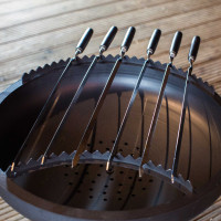 UNO SHAMP — це спеціальна підставка для шампурів, яку можна встановити на моделі грилів UNO та UNO+. На ній зручно готувати на відкритому вогні класичний шашлик з м'яса, риби, морепродуктів, овочів. Підставка розрахована на одночасне використання до восьми шампурів.